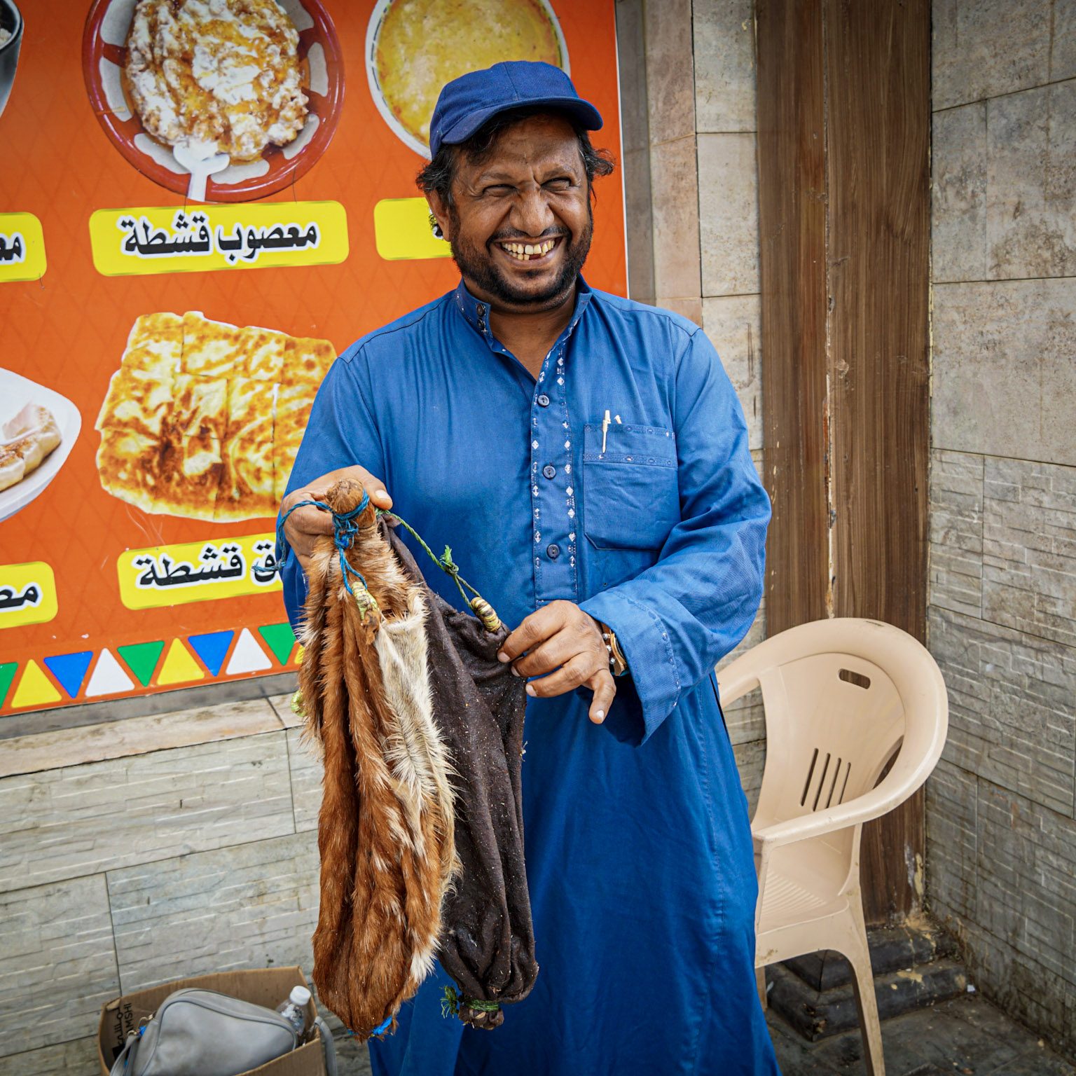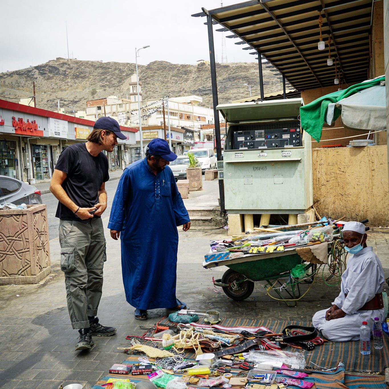 Dans la région de Jizzan, nous avons dormi dans la caravane de Mohammed, un fermier qui nous avait pris en stop depuis Riyadh et avec qui nous avons traversé plus de 1000km de route désertique. L’auto-stop nous a encore mené à Ahmed, un avocat bien trop fun qui, après nous avoir pris en stop, a décidé de nous emmener dans des villages isolés pour nous faire découvrir l’artisanat local et nous faire déguster les spécialités du pays.